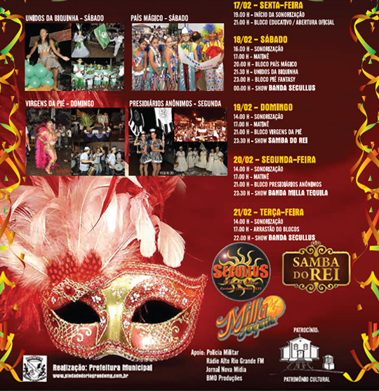 Programação Carnaval de Piedade do Rio Grande . 17 a 21 de Fevereiro