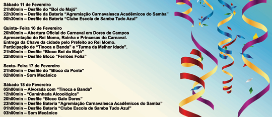 Programação Carnaval de Dores de Campos . 11 a 21 de Fevereiro