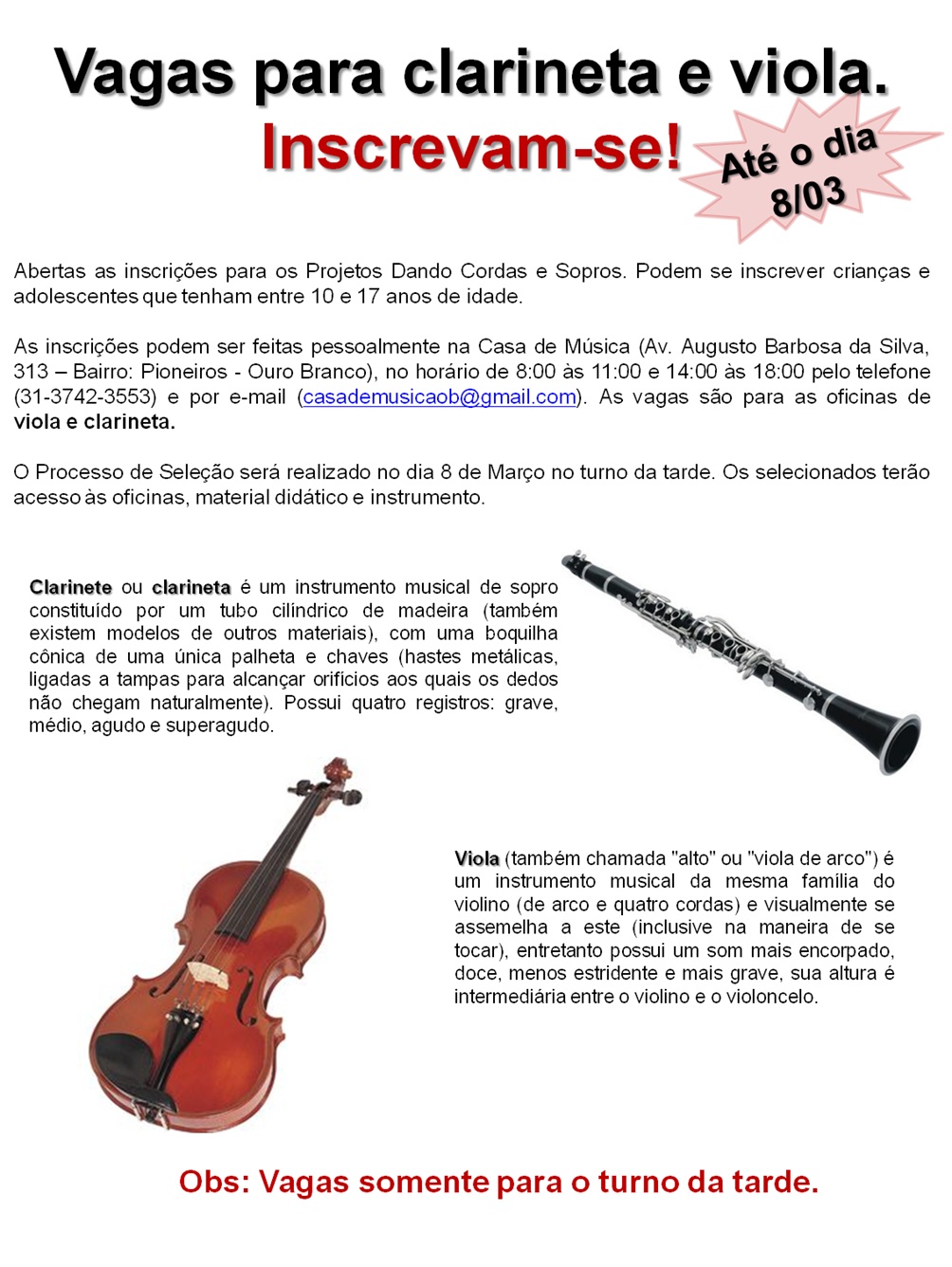 Oficinas de Viola e Clarineta . Projeto Dando Cordas e Sopros
