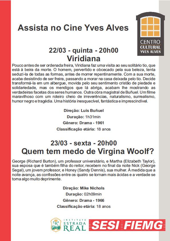 Sessões de Cinema no Centro Cultural Yves Alves . 22 e 23 de Março