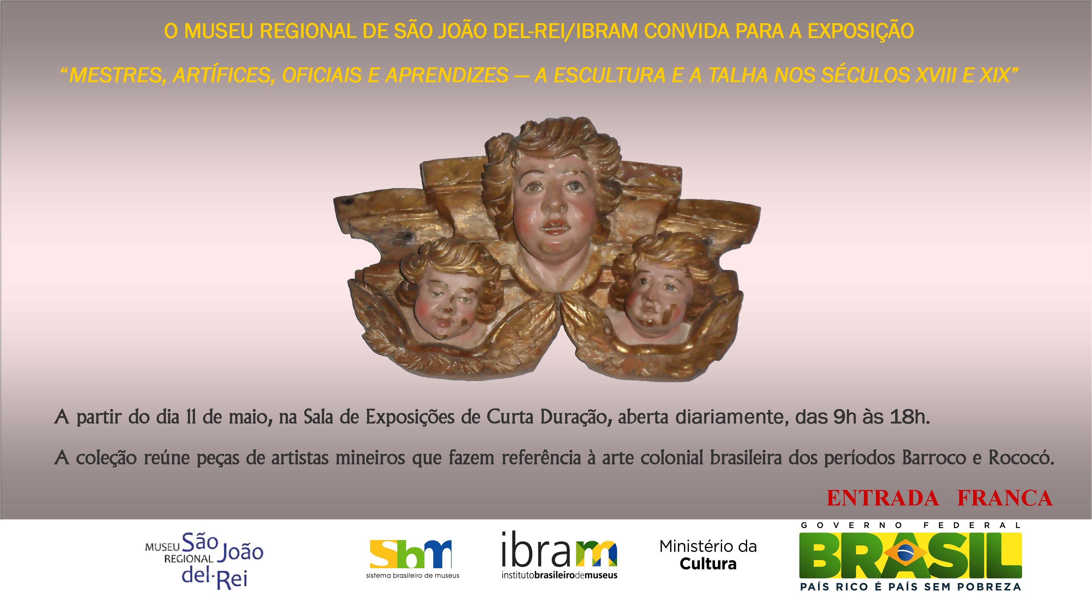 O Museu Regional de São João del-Rei/IBRAM apresenta, a partir do dia 11 de maio, na sala de exposições de curta duração, a exposição Mestres, Artífices, Oficiais e Aprendizes – a Escultura e a Talha nos Séculos XVIII e XIX.