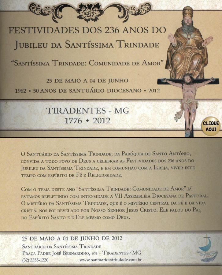 Festividades dos 236 anos do Jubileu da Santíssima Trindade . 25 de Maio a 04 de Junho
