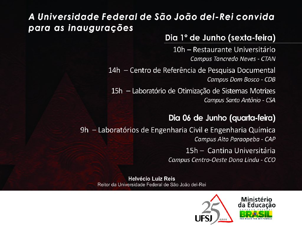 Inaugurações na Universidade Federal de São João del-Rei (UFSJ) . 1 e 6 de Junho