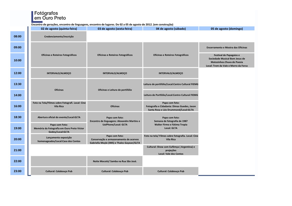 página inicial | livro ser nobre é ter identidade | rede colaborativa pró-agenda 2030 Agenda Cultural Fotógrafos em Ouro Preto . Encontro Nacional de Fotógrafos . 2 a 5 de Agosto Data 02/08/2012 Cidade Ouro Preto Descrição Mais informações: www.fotografosemouropreto.com.br Compartilhar no Facebook Compartilhar no Instagram Compartilhar no Whatsapp Imprimir