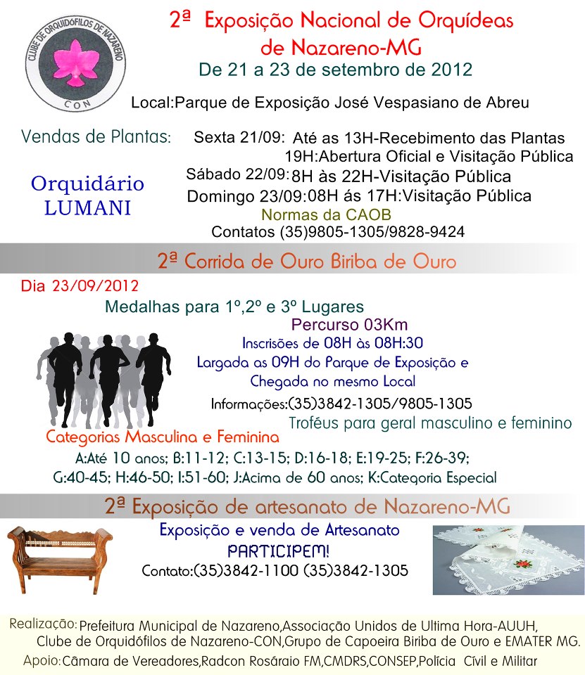 2ª Exposição Nacional de Orquídeas, Artesanato e Corrida de Nazareno . 21 a 23 de Setembro