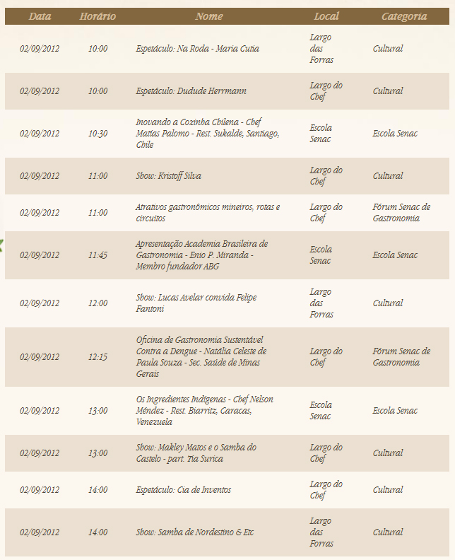 XV Festival Cultura e Gastronomia Tiradentes . Programação 02 de Setembro . Fóruns, espetáculos, oficinas, shows