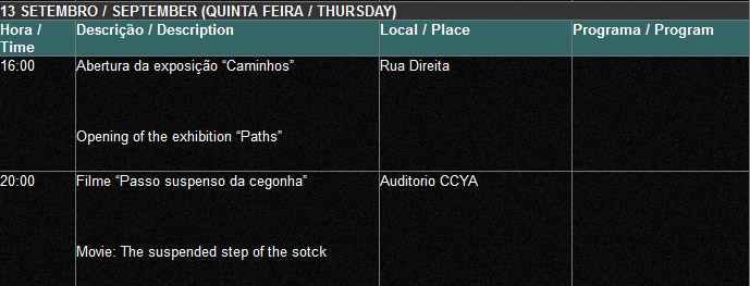 1º Festival Internacional de Artes de Tiradentes . Programação de 13 de Setembro . exposição e filme