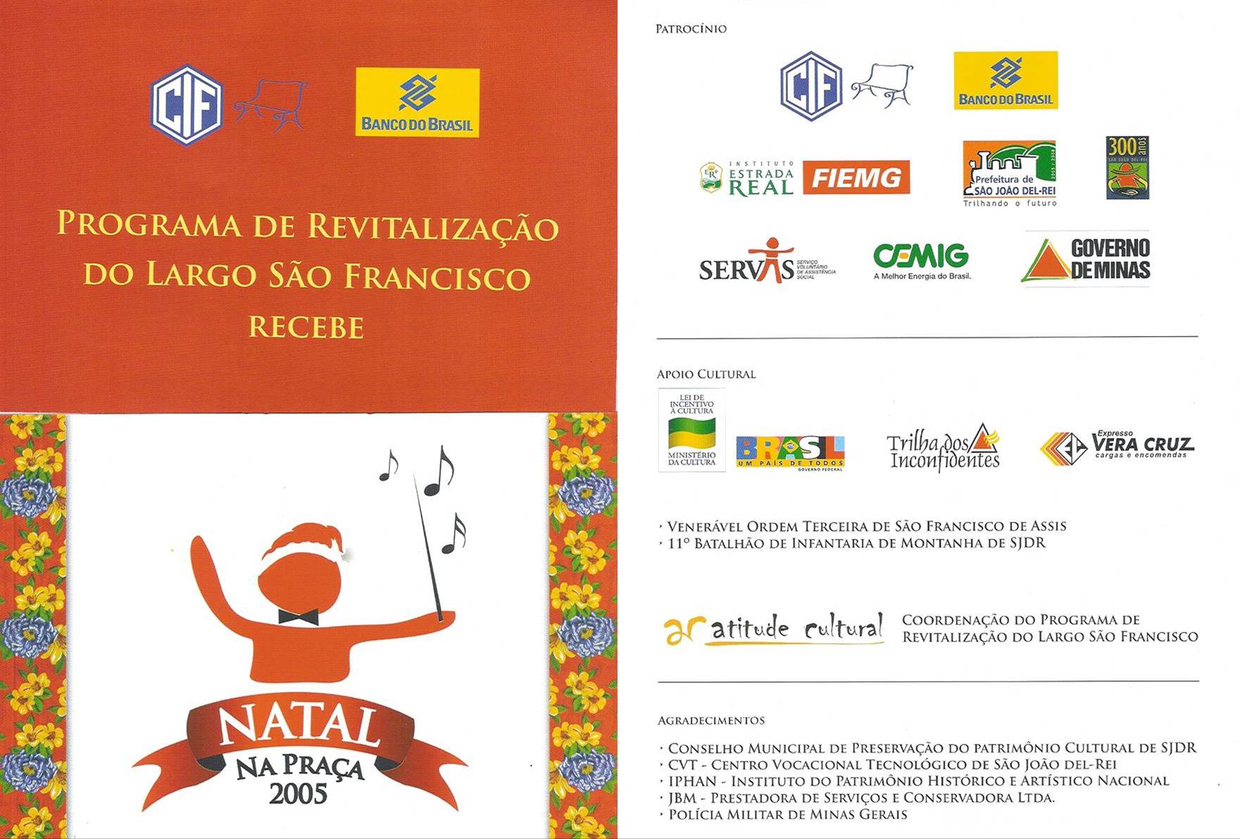 Venerável Ordem Terceira de São Francisco de Assis . Conselho Municipal de Preservação do Patrimônio Cultural de SJDR . CVT – Centro Vocacional Tecnológico de São João del-Rei . IPHAN – Instituto do Patrimônio Histórico e Artístico Nacional . Polícia Militar de Minas Gerais . Trilha dos Inconfidentes . Expresso Vera Cruz . BS Projetos e Consultoria . 11° Batalhão de Infantaria de Montanha de São João del-Rei.