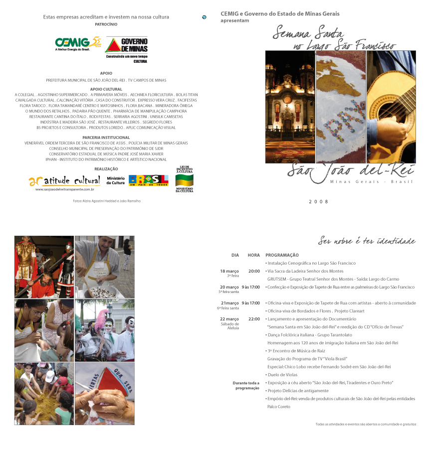 - Lançamento e apresentação do Documentário . Semana Santa em São João del-Rei e reedição do CD "Ofício de Trevas"