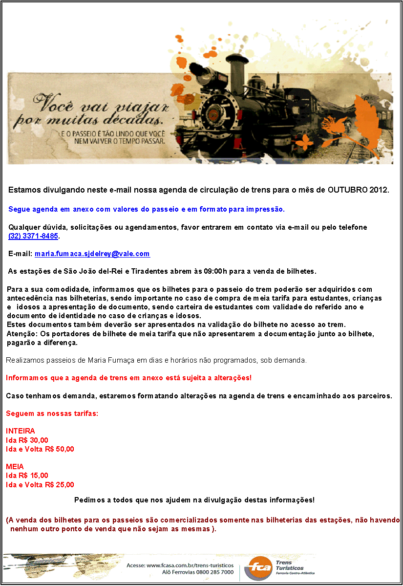 Circulação da Maria Fumaça . Outubro