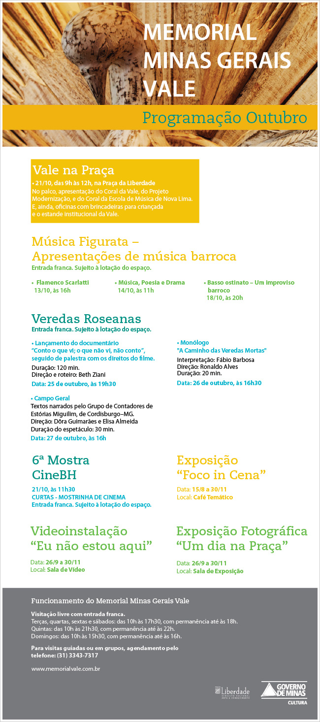 Memorial Minas Gerais Vale . Programação de Outubro