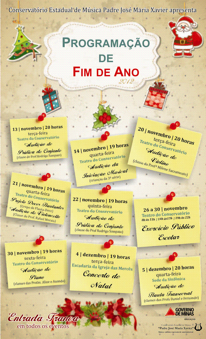 página inicial | livro ser nobre é ter identidade | rede colaborativa pró-agenda 2030 Agenda Cultural Programação de Fim de Ano do Conservatório E. de Música Pe. José Maria Xavier . 13 de Novembro a 5 de Dezembro Data 13/11/2012 Cidade SJDR Descrição Conservatório Estadual de Música Padre José Maria Xavier Compartilhar no Facebook Compartilhar no Instagram Compartilhar no Whatsapp Imprimir