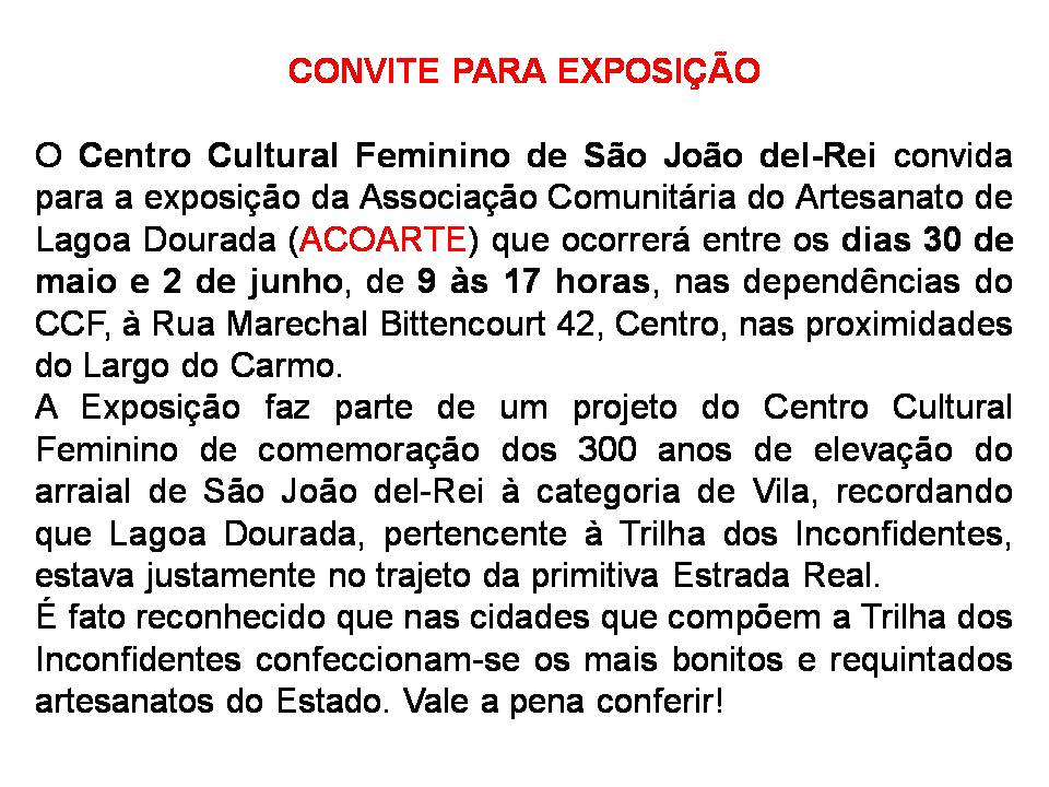 Exposição da Associação Comunitária do Artesanato de Lagoa Dourada . Até 2 de Junho