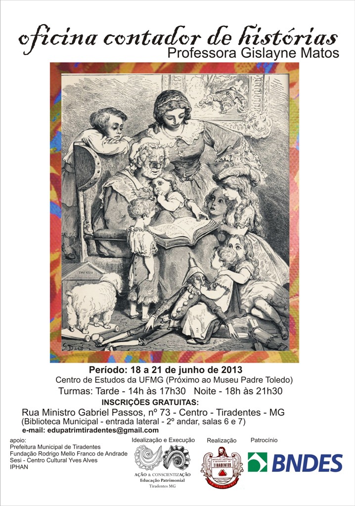 Oficina Contador de Histórias, com a professora Gislayne Matos . De 18 a 21 de Junho