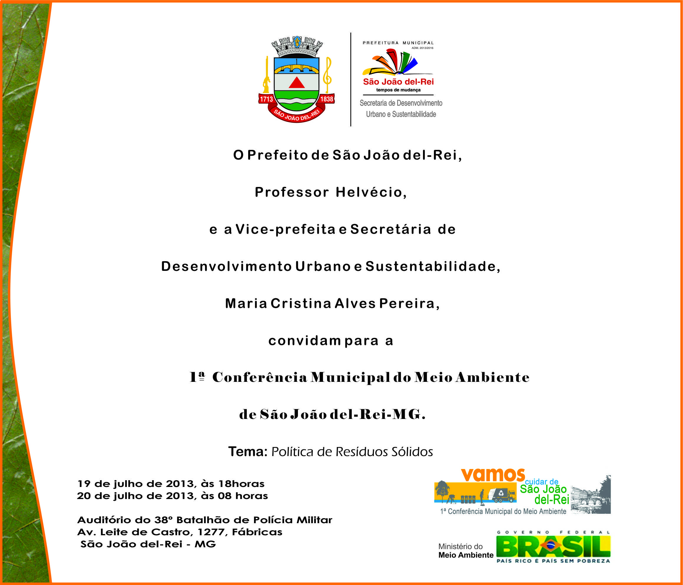 1ª Conferência do Meio Ambiente de São João del-Rei . 19 e 20 de julho