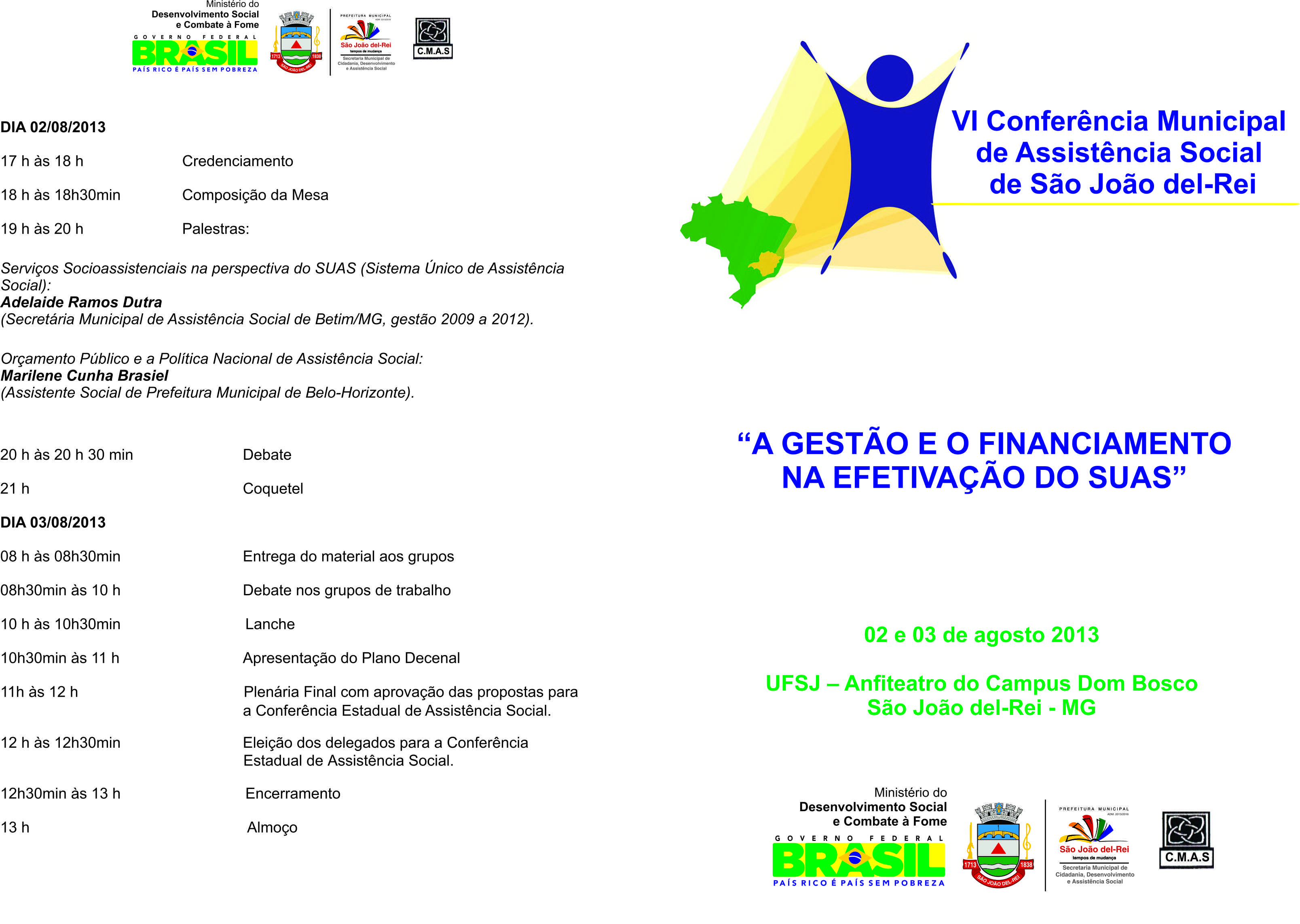 VI Conferência Municipal de Assistência Social de São João del-Rei . 2 e 3 de Agosto de 2013