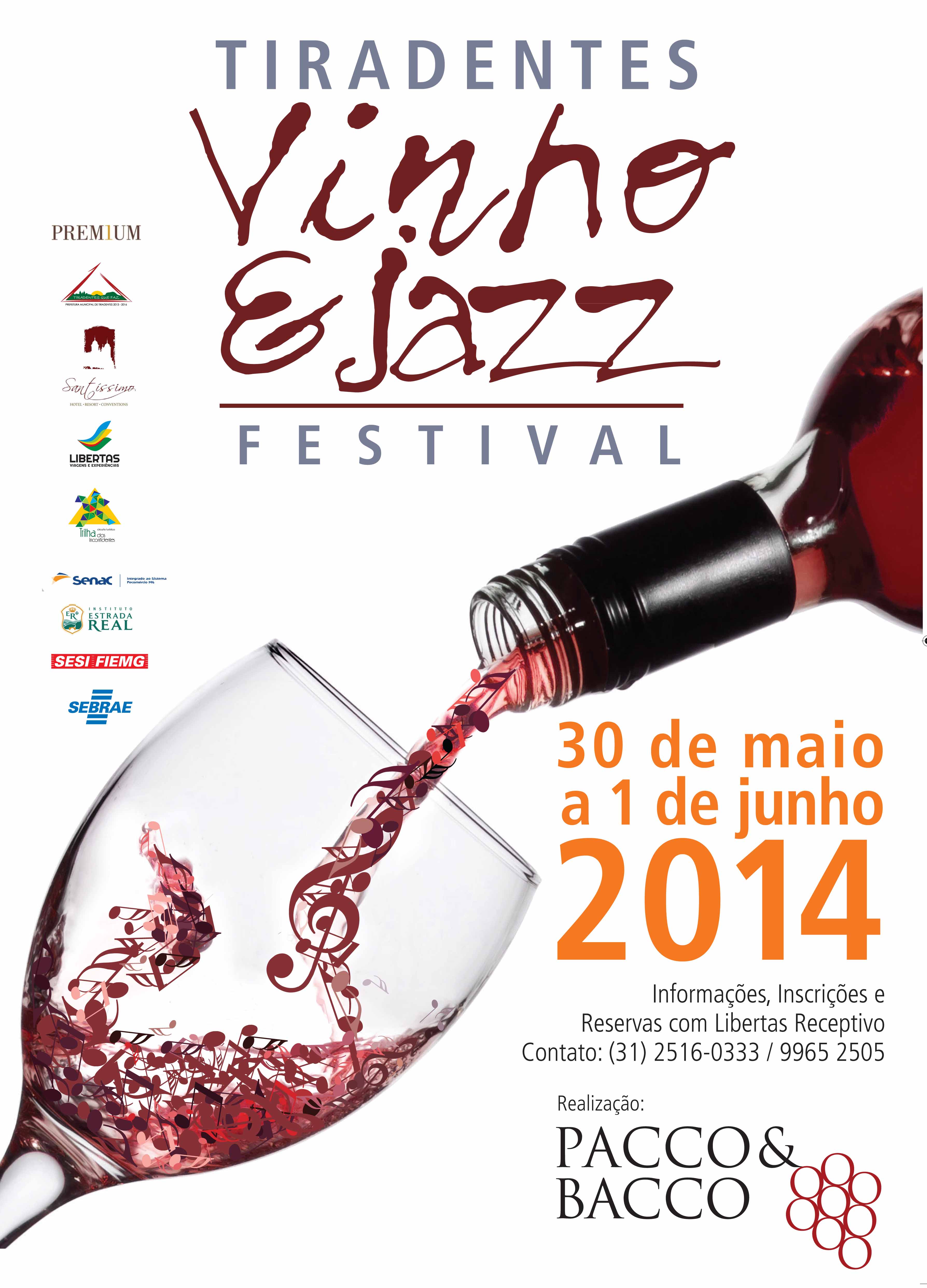 O vinho e o jazz prometem contagiar a encantadora Tiradentes entre os dias 30 de maio e 01 de junho. É que o Festival Vinho e Jazz, evento idealizado por Pacco & Bacco chega à sua segunda edição. Com a proposta de unir o prazer da boa música com o sabor do vinho, o festival já está inserido no calendário de eventos da cidade histórica como mais uma atração para quem visita a região do Campo das Vertentes de Minas Gerais.