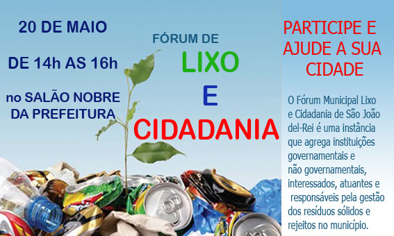 Por meio deste, manifestamos nosso interesse construir conjuntamente com você cidadão e sua entidade o Fórum Municipal Lixo e Cidadania de São João del-Rei, somando esforços no sentido de: