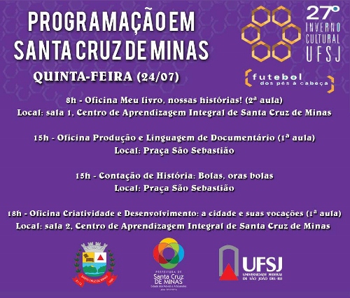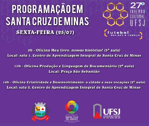 Programação do 27º Inverno Cultural da UFSJ em Santa Cruz de MInas . De 23 a 27/07
