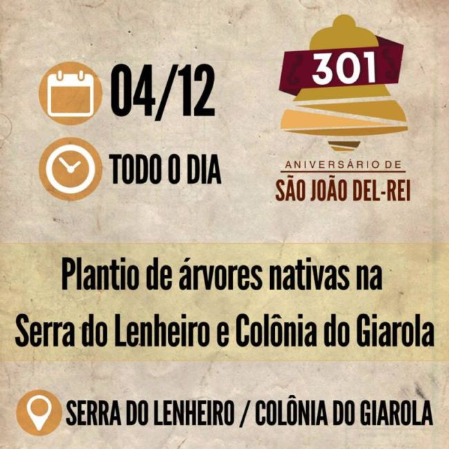 Plantio de árvores. Evento 300 anos +1 . SÃO JOÃO DEL-REI COMPLETA 301 ANOS DIA 8 DE DEZEMBRO