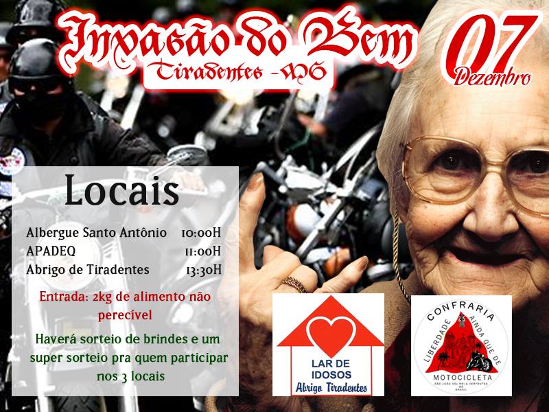 A C.L.A.Q.D.M - Confraria Liberadade Ainda Que De Motocicleta, tem o prazer de convidar os motociclistas, aficcionados e não motociclistas para a Invasão do Bem - II - Ainda melhor que a primeira. Fazendo o bem para quem pouco, ou nada tem.