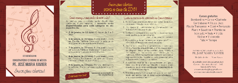 Matrículas no Conservatório Estadual de Música "Pe. José Maria Xavier" . 5 a 9/01