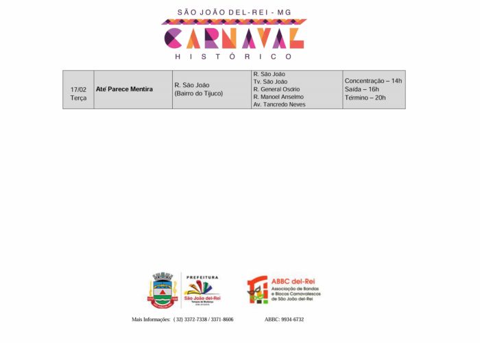 Confira a programação dos últimos dias da semana antecipada de carnaval com os blocos da histórica São João del Rei: