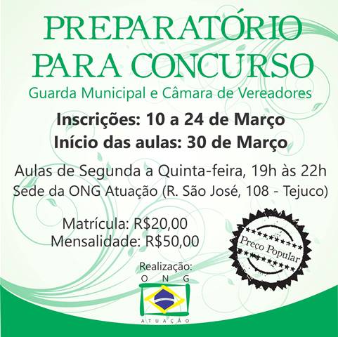 Preparatório para Concurso Guarda Municipal e Câmara de Vereadores . Inscrições abertas!