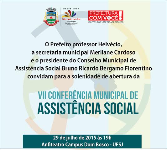 VII Conferência Municipal de Assistência Social . Dias 29 e 30/07