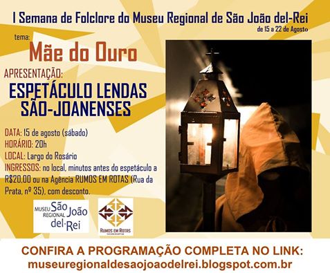 Com o intuito de realizar um evento cultural a cada mês, o Museu Regional de São João del-Rei promove a I Semana do Folclore a partir do tema Mãe do Ouro. De acordo com um dos organizadores da festividade, Helvister Resende, a ideia de utilizar tal tema veio junto com o objetivo de sair do convencional. “Decidimos fazer a semana já que agosto é o mês do folclore, porém tentamos fugir dos já conhecidos saci pererê e mula sem cabeça. Acreditamos que o folclore abrange muito mais, inclusive lendas e tudo relacionado à cultura popular”, explicou.