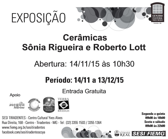 Exposição "Cerâmicas" de Sônia Rigueira e Roberto Lott . De 14/11 a 13/12