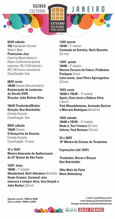 Confira a programação cultural de janeiro do SESI Tiradentes: