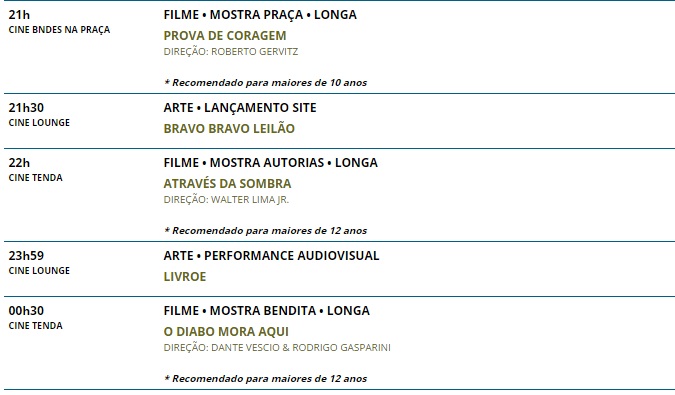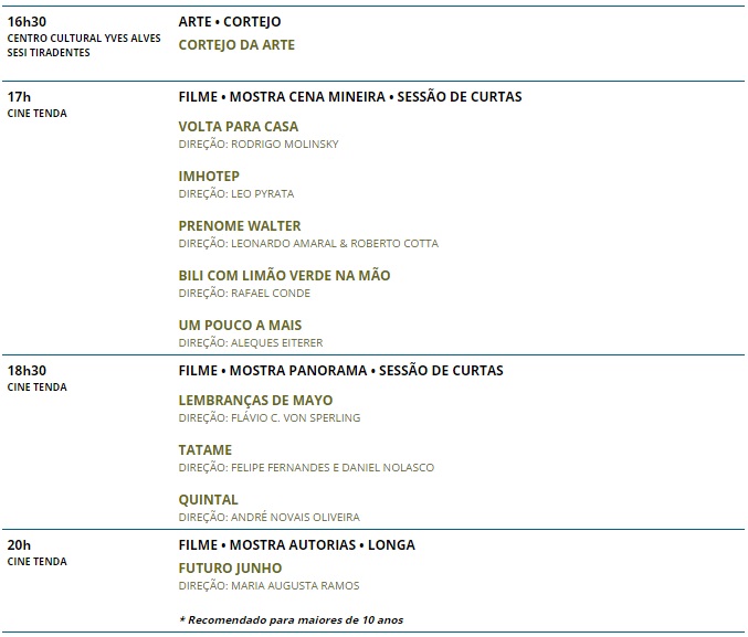 19ª Mostra de Cinema de Tiradentes . Programação completa do dia 23/01