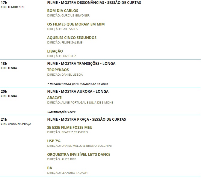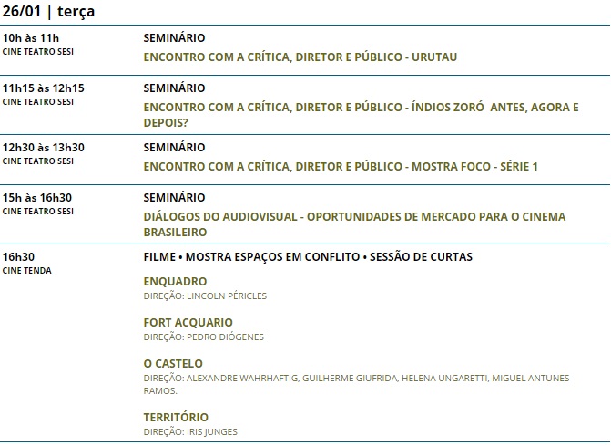 19ª Mostra de Cinema de Tiradentes . Programação completa do dia 26/01