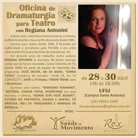 Oficina de Dramaturgia para Teatro com Regiana Antonini . UFSJ Campus Santo Antônio . De 28 a 30/04