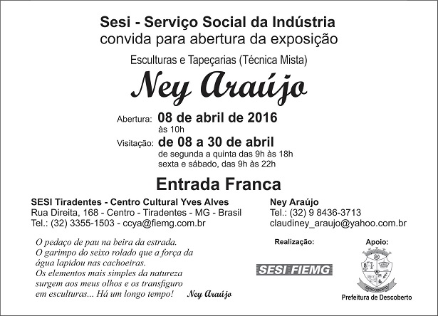 Exposição "Esculturas e Tapeçarias" de Ney Araújo . De 08 a 30/04