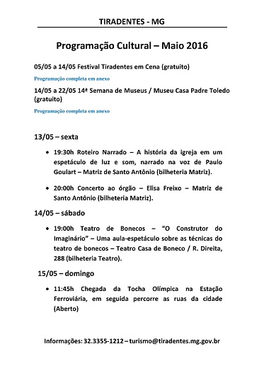 Esteja sempre atualizado do que acontece de melhor em São João del Rei, Tiradentes e região.