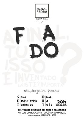“Fado” traz para a cena as angústias do homem contemporâneo, seus desafios, solidões, incertezas. No palco, situações fragmentadas da busca cotidiana por trabalho, sustento, afeto, informação, prazer, relacionamentos, amores... No encontro de um mundo e de pessoas que interferem, impõem, ou que se inventam... Afinal, tudo isso é inventado? Existe? Importa?