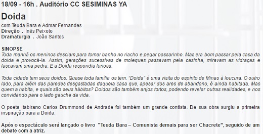 Espetáculo "Doida" com Teuda Barros e Admar Fernandes . SESI Tiradentes . Festival Artes Vertentes