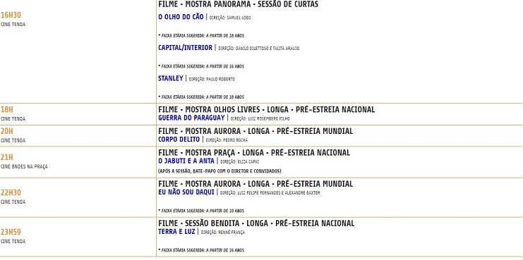 20ª Mostra de Cinema de Tiradentes . Programação completa de 27/01