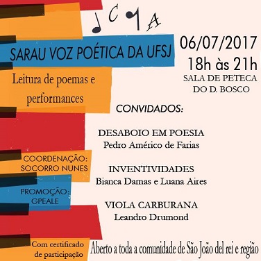 Sarau Voz poética da UFSJ: leitura de poemas e performances . Sala da Peteca CDB UFSJ