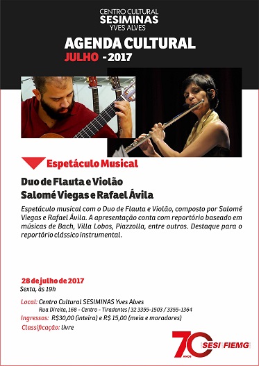 Espetáculo musical "Duo de Flauta e Violão" com Salomé Viegas e Rafael Ávila . SESI Tiradentes