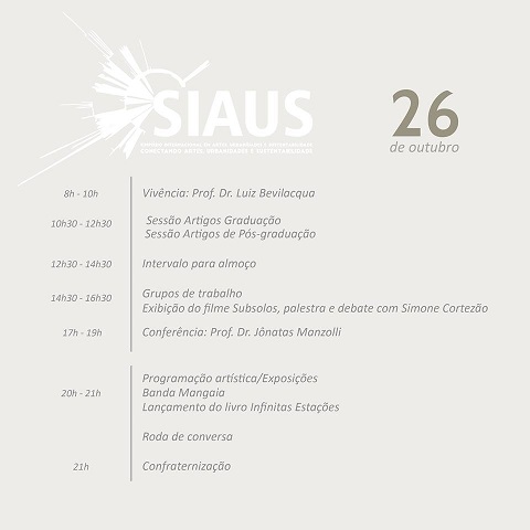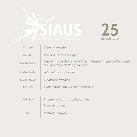 Simpósio Internacional de Artes, Urbanidades e Sustentabilidade . De 25 a 27/10