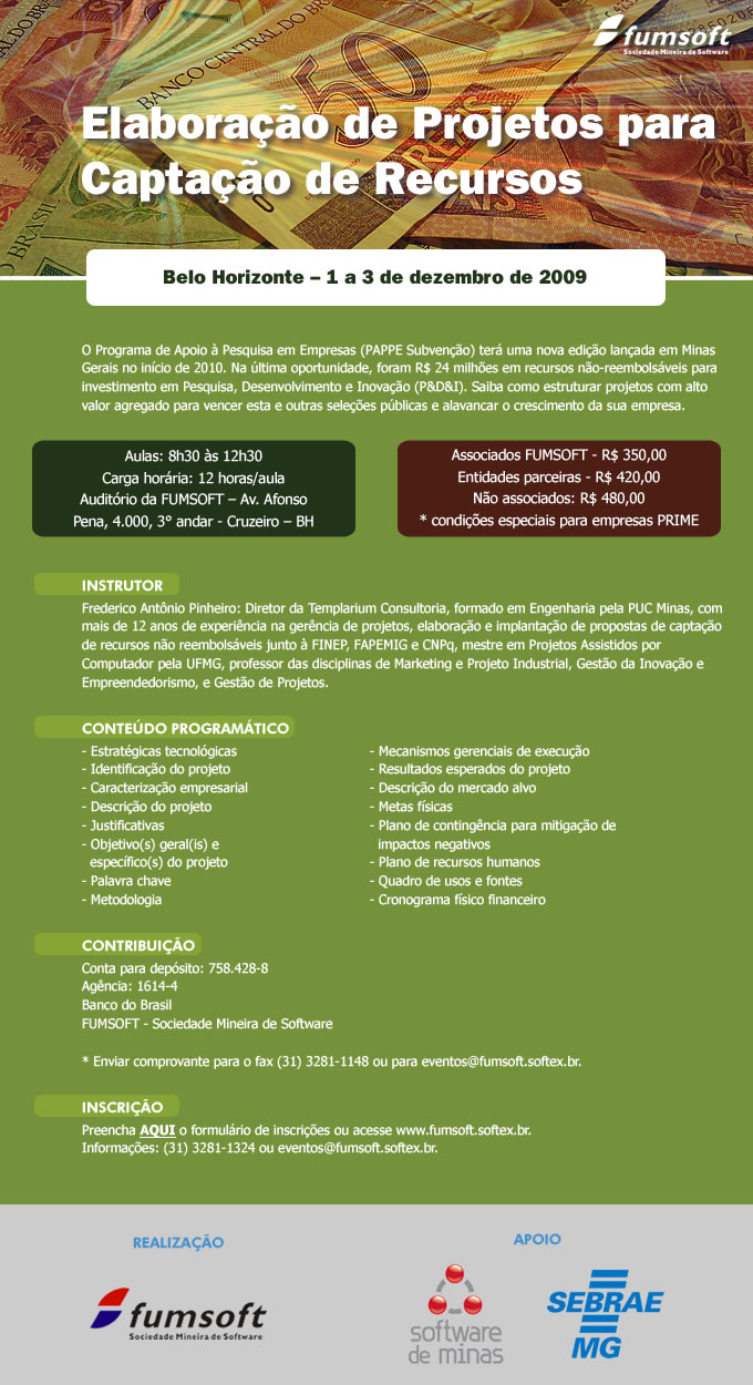 Curso Elaboração de Projetos para Captação de Recursos . de 1 a 3 de dezembro