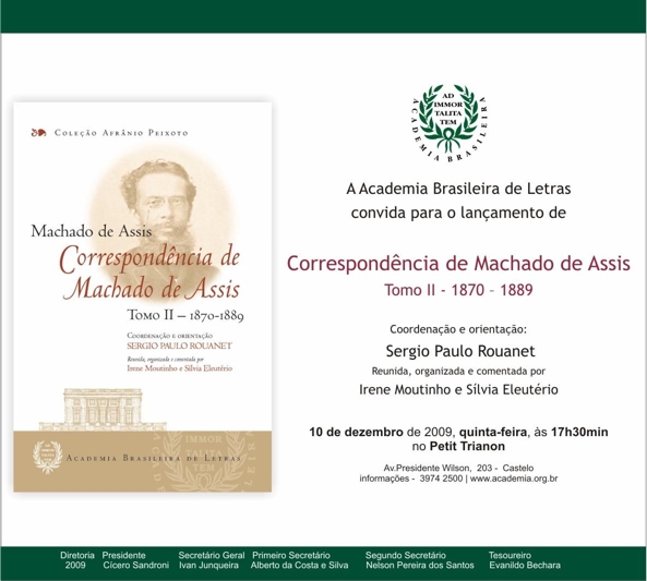 Lançamento de Correspondência de Machado de Assis . Tomo II 1870 - 1889