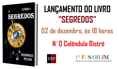Então, anote na sua agenda. Dia 02 de dezembro, a partir das 18 horas, no O Calêndula Bistrô, dentro do 1º FESARLIM, lançamento do livro "Segredos".