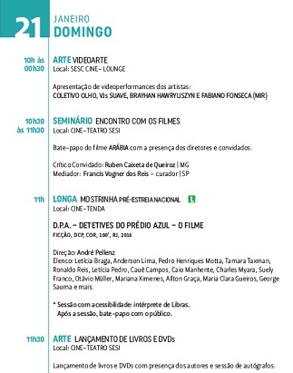 Mostra de Cinema de Tiradentes . Programação do dia 21/01