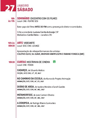 Mostra de Cinema de Tiradentes . Programação do dia 27/01