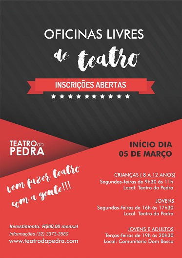 Oficinas livres de teatro . Teatro da Pedra . Inscrições abertas