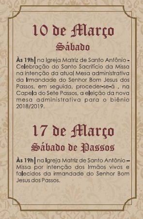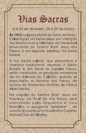 Comemoração dos Passos . Tiradentes . De 16/02 a 18/03